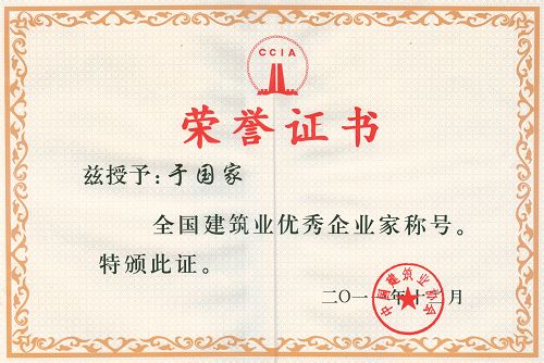 12月14日,集團公司常務副總裁鄒志堅代表集團公司,參加了中國建筑業協會在北京隆重召開的2010年度中國建筑業企業雙百強發布會議。住房和城鄉建設部部長姜偉新代表住房城鄉建設部并以個人名義發來賀信,中國建筑協會會長鄭一軍、副會長兼秘書長吳濤等領導出席會議,并為獲獎單位和個人頒獎。我集團公司成功入選“中國建筑業最具成長性百強企業”,并被評為全國建筑業先進企業,集團公司董事長于國家被評為全國建筑業優秀企業家。