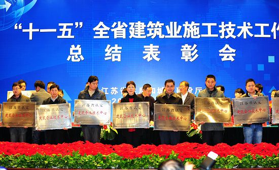 “十一五”全省建筑業施工技術工作總結表彰會于2011年12月22日在鐘山賓館黃埔廳隆重召開。省住房和城鄉建設廳副廳長徐學軍作了“推動建筑業施工技術工作,促進建筑業持續健康發展”的工作報告;省住房和城鄉建設廳副廳長顧小平在會上作了重要指示。大會由省建筑工程管理局副局長成際貴主持,省住房和城鄉建設廳科研設計處處長陳繼東宣讀全省建筑業技術進步先進單位和先進個人表彰決定并頒獎;省經信委副主任閆浩宣讀第二批、第三批認定省級建筑業企業技術中心名單并授牌。會上邀請中建總公司科技部總經理肖緒文作了關于《建筑業十項新技術(2010)》解讀,東南大學呂志濤院士作了“建筑工程技術的發展”報告。