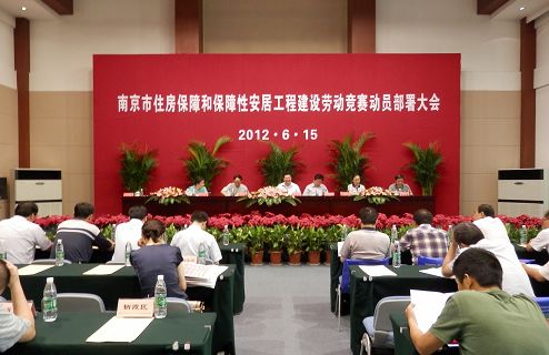 6月15日下午,南京市召開保障房建設(shè)勞動(dòng)競(jìng)賽總結(jié)表彰暨動(dòng)員大會(huì)。省建設(shè)工會(huì)陳海昌主席、市住房和城鄉(xiāng)建設(shè)委員會(huì)毛龍泉、李真副主任等相關(guān)領(lǐng)導(dǎo)參加了會(huì)議。會(huì)上,毛龍泉副主任對(duì)2011年南京市住房保障和保障性安居工程建設(shè)勞動(dòng)競(jìng)賽作總結(jié)并對(duì)2012年競(jìng)賽活動(dòng)動(dòng)員部署;省建設(shè)工會(huì)和市總工會(huì)負(fù)責(zé)人宣讀表彰2011年度全國(guó)、省、市住房保障和保障性安居工程建設(shè)勞動(dòng)競(jìng)賽活動(dòng)先進(jìn)集體和先進(jìn)個(gè)人的決定。