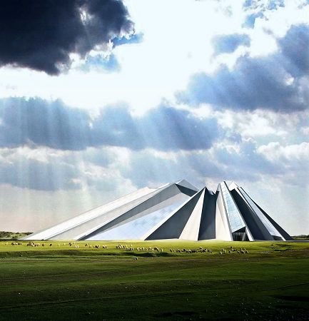 博物館位于鄂爾多斯市伊金霍洛鎮(zhèn)北側(cè),距一代天驕成吉思汗陵墓的直線距離約2公里。工程占地面積10萬平方米,主要分為展示區(qū)、收藏區(qū)、調(diào)研區(qū)和管理區(qū);平面形態(tài)和布局為成吉思汗開創(chuàng)的歐亞大陸版圖,立面呈山巒造型,在天似穹廬籠蓋四野的大草原上顯得更加雄偉峻峭;地上三層,主體結(jié)構(gòu)為斜向焊接球網(wǎng)架+鋼桁架支撐組合結(jié)構(gòu)體系,跨度約200米*90米;屋面系統(tǒng)及幕墻造型復(fù)雜,技術(shù)含量高,施工難度大。工程造價(jià)約2億元。