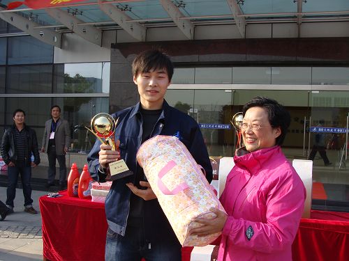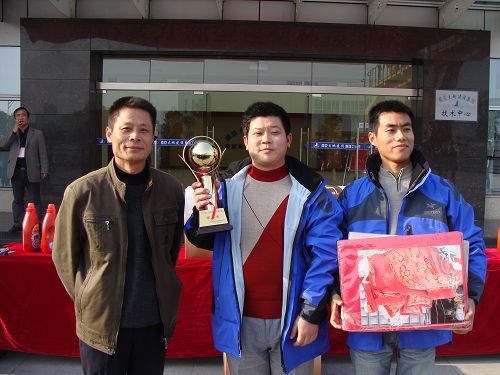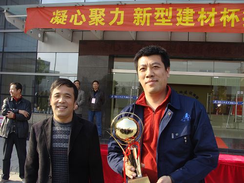 新型建材公司總經理杜維艾為亞軍——大地萬宏混凝土公司頒發獎杯