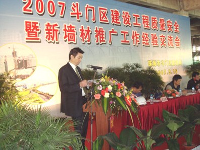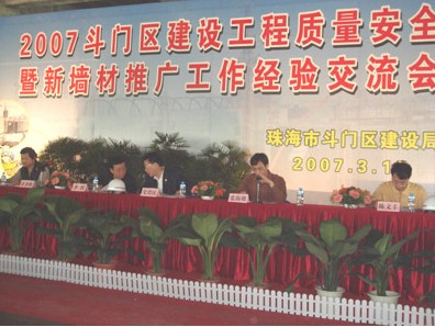 2007年3月11日由珠海市斗門區(qū)組織參觀我南京大地建設(shè)紫翔項(xiàng)目部,推廣我公司的工程質(zhì)量、安全生產(chǎn)、文明施工的管理經(jīng)驗(yàn),及2007斗門區(qū)建設(shè)工程質(zhì)量安全暨新型材料推廣工作經(jīng)驗(yàn)交流會(huì),在我紫翔項(xiàng)目部召開。到會(huì)的有珠海市領(lǐng)導(dǎo)、斗門區(qū)區(qū)領(lǐng)導(dǎo)、建設(shè)局領(lǐng)導(dǎo),會(huì)上珠海分公司于國權(quán)總經(jīng)理作大地建設(shè)管理經(jīng)驗(yàn)報(bào)告,會(huì)后市領(lǐng)導(dǎo)及到會(huì)的各建設(shè)單位、監(jiān)理單位、施工單位等參會(huì)200余人員,在于國權(quán)總經(jīng)理的陪同下興致勃勃的參觀了工地,對本工地上新型材料的使用、工程質(zhì)量、科學(xué)管理、安全生產(chǎn)、文明施工現(xiàn)場給予很高的評價(jià),為珠海建筑業(yè)樹起了新的典型。