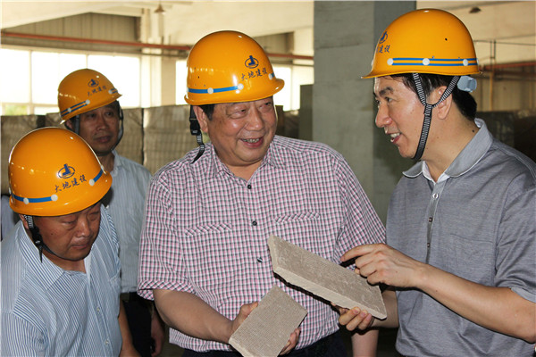 于國(guó)家董事長(zhǎng)向俞書(shū)記介紹了我司15年來(lái)建筑工業(yè)化發(fā)展的歷程、目前已取得的成績(jī)以及遇到的困難。他說(shuō),早在1998年,我司主動(dòng)應(yīng)對(duì)傳統(tǒng)建筑業(yè)資源利用率低、工作效率不高、工作環(huán)境差、施工方法落后等發(fā)展瓶頸,加快轉(zhuǎn)型升級(jí)步伐,踏上建筑工業(yè)化發(fā)展之路,先后投入了大量資源打造大地工業(yè)園,專業(yè)研發(fā)建筑工業(yè)化相關(guān)產(chǎn)品,提煉核心技術(shù)。通過(guò)十五年的不懈努力,目前已擁有相當(dāng)數(shù)量的科研成果并實(shí)現(xiàn)了成功轉(zhuǎn)化。公司生產(chǎn)的房屋預(yù)制構(gòu)件已成功應(yīng)用于近500萬(wàn)平方米的各類(lèi)建筑上;市政管網(wǎng)預(yù)制構(gòu)件的研發(fā)與應(yīng)用也日趨成熟,占有較大的市場(chǎng)份額;仿天然石材常年出口日本及亞非歐國(guó)家。但同時(shí),我司在全省率先發(fā)展建筑工業(yè)化的過(guò)程中,由于受市場(chǎng)認(rèn)知度、缺少政策扶持等因素制約,影響了建筑工業(yè)化、產(chǎn)業(yè)化、綠色化進(jìn)程。