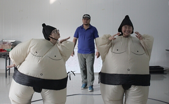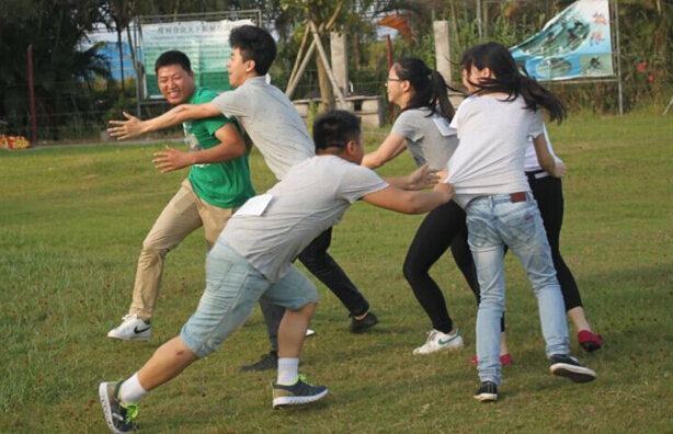 拓展訓(xùn)練的現(xiàn)場(chǎng)洋溢著緊張、歡樂的氣氛。開場(chǎng)的破冰游戲讓小伙伴們拋開工作煩惱,消除同事之間的隔膜,投入到拓展訓(xùn)練中來(lái)。握手擁抱互相熟悉之后,拓展教練將參加人員分為兩個(gè)組,規(guī)定在有限時(shí)間內(nèi)由隊(duì)員選出來(lái)的隊(duì)長(zhǎng)要帶領(lǐng)大家確定出隊(duì)名、隊(duì)伍口號(hào)和隊(duì)歌,大家迅速融入其中。兩個(gè)小組分別取名為“余家?guī)?/SPAN>”和“超能陸戰(zhàn)隊(duì)”,余家?guī)偷年?duì)歌《團(tuán)結(jié)就是力量》鏗鏘有力,而超能陸戰(zhàn)隊(duì)的隊(duì)歌《青春修煉手冊(cè)》則勝在青春活力“萌萌噠”。兩隊(duì)在隊(duì)伍士氣展示環(huán)節(jié)也是激情高昂、不相伯仲。
