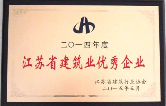 2015年5月29日,在江蘇省建筑業(yè)協(xié)會(huì)第六屆四次會(huì)員代表大會(huì)上,股份公司被授予2014年度“江蘇省建筑業(yè)優(yōu)秀企業(yè)”榮譽(yù)稱號。