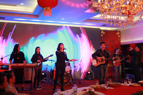 機關員工的樂隊表演,是公司團拜會舞臺上第一次由集團自己的員工彈奏樂器,演奏的架子鼓、吉他、貝斯,配合默契,活力四射,一曲《海闊天空》把大地人的眼光引向美好的未來,激發起奮斗的激情夢想,最后獲得了最受歡迎的節目評選一等獎。