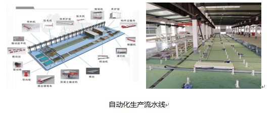 其具有高產能、高效率的生產特性,運行節拍按照10分鐘設計,根據生產組織和循環模具的數量,每條生產線的機械設計可達到每天連續3班,每年300個工作日的要求。最高年產量可達72000余塊臺模構件,折合約10余萬立方米的混凝土構件。而兩條菜單式定制的異形構件生產線與兩條自動化生產線形成互補,對于非標準模數的預制構件,采用固定臺座生產模式,其適應性強,加工工藝靈活,滿足客戶個性化、多樣化要求。