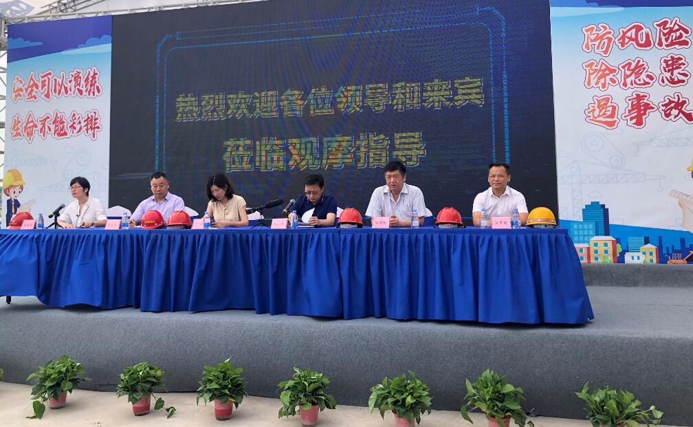6月25日上午9:30分,建鄴區建筑工程突發事故綜合應急演練在我公司總承包的一中分校項目實施。這次活動由南京市建鄴區建設局、南京建鄴國有資產經營集團有限公司主辦,由南京市建鄴區建筑安全生產監督站承辦,我們南京大地建設集團有限責任公司和南京市建鄴區消防救援大隊、南京明基醫院協辦。參加的領導有建鄴區人民政府副區長孫小軍;南京市城鄉建設委員會質安處副處長李琍;建鄴區建設局局長顧穎勤等。集團公司總裁江中明及現代建筑業平臺黨委書記顧衛東,以及集團安環處和集團子分公司安全負責人、項目部安全主管到會參加。參加的人員和單位還有建鄴區各街道、消防大隊、生態科技島經開區、高新區、江東、河西CBD等各安全分管領導;建鄴區區管項目建設工程建設單位、監理單位、施工單位負責人等200余人。
