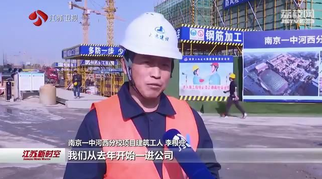 江蘇臺記者:我現在是在南京一中河西項目的實名制通道,大家看到我手上拿的是一張實名制的市民卡,在這里每一位工人需要刷卡才能進去工區,同時在我身后的顯示器上也會顯示每個人的工種和到崗信息。