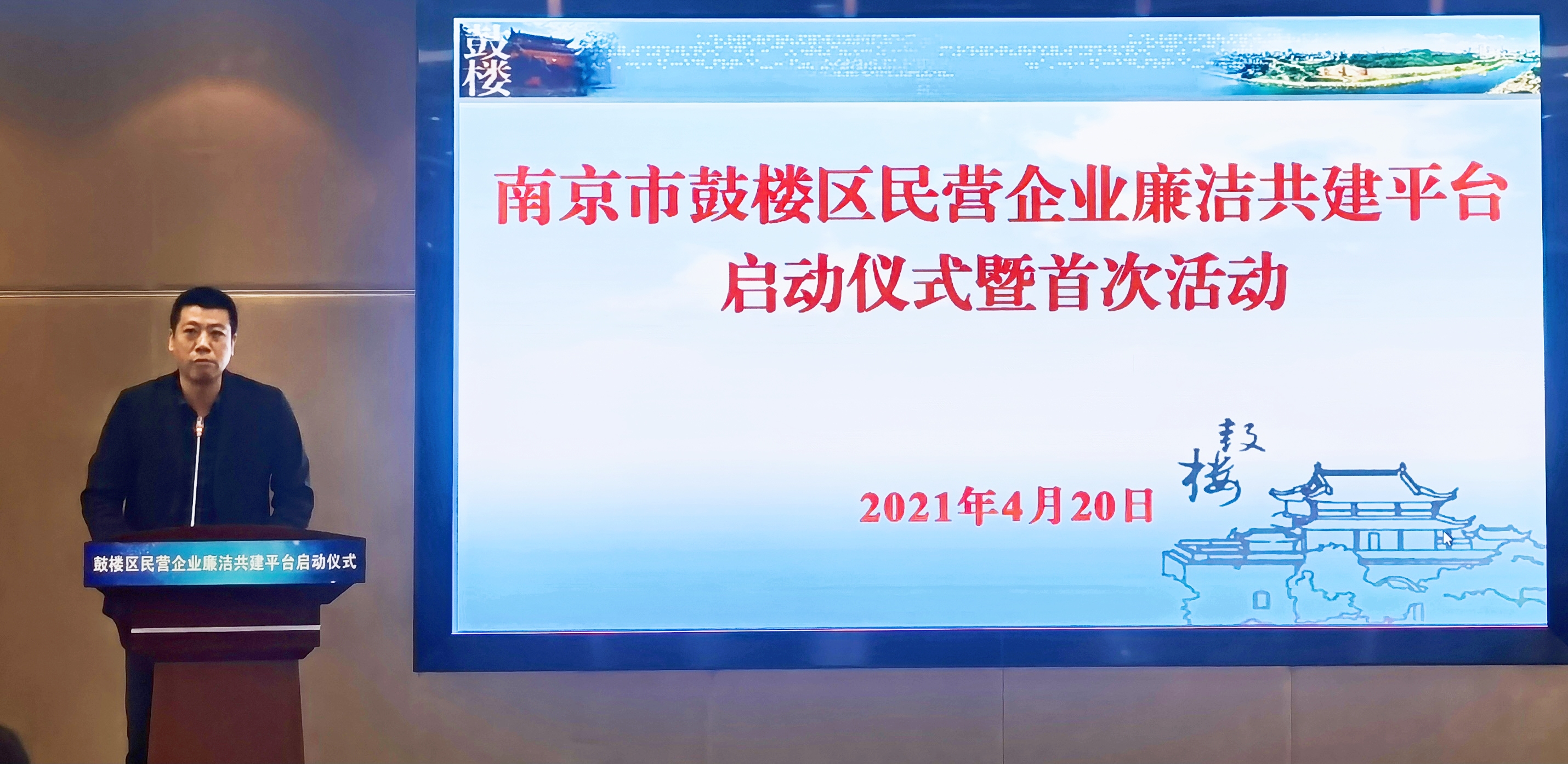 為助推公司廉潔文化建設,4月20日公司黨委參加了南京市鼓樓區民營企業廉潔共建平臺啟動儀式。該平臺由鼓樓區紀委監委聯合區委組織部、區工商聯、高新區黨工委、華僑路街道黨工委共同打造,旨在通過開展政治理論聯學、優勢資源聯享、實踐活動聯辦,進一步落實惠企政策、優化涉企服務,維護企業合法權益。做為平臺聯絡單位負責人,公司黨委書記于春代表參會單位發言,表示“有決心也有信心在鼓樓區各級部門的領導下,按照平臺建設的要求,進一步完善公司制度建設和員工作風建設,營造風清氣正發展氛圍。依托平臺與兄弟單位優勢互補、互惠合作,形成強強聯合、共贏未來的發展局面。”